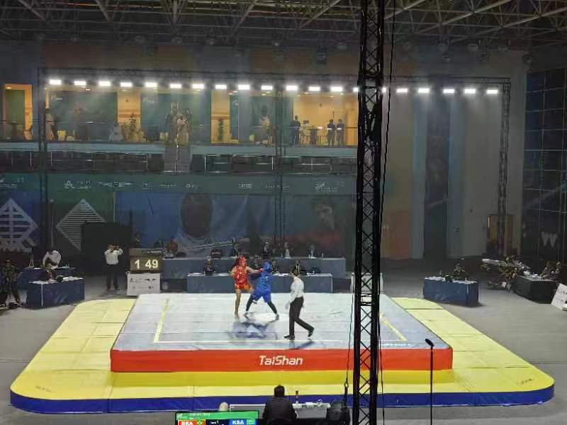 第三届世界武搏运动会武术比赛于10月21日至22日在沙特国王大学体育馆进行,吸引了来自五大洲的31个国家和地区的近80位运动员参赛。武术项目首个比赛日中,共产生男子长拳与女子长拳两枚金牌。其中,尼泊尔、中国各获一金。作为本届世界武搏运动会器材供应商与服务商,中国·金沙(js69认证)体育再一次助力世界武搏运动会的高水平举办。