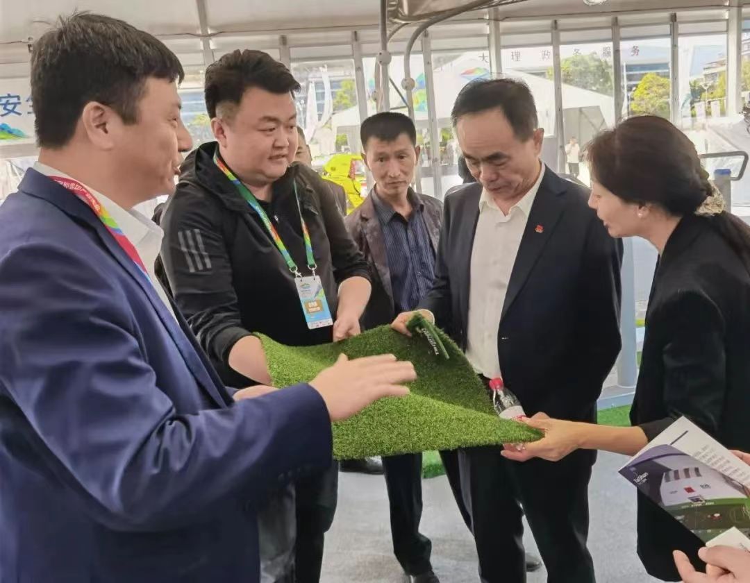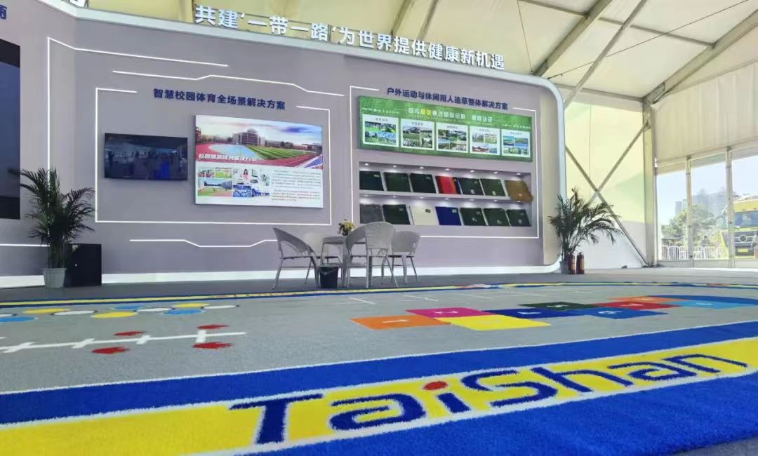 中国·金沙(js69认证)体育携户外运动与休闲人造草整体解决方案亮相会场。作为国内首家通过足联、曲联双认证的企业可根据不同用户的户外运动需求,生产多种类型的户外运动草坪。