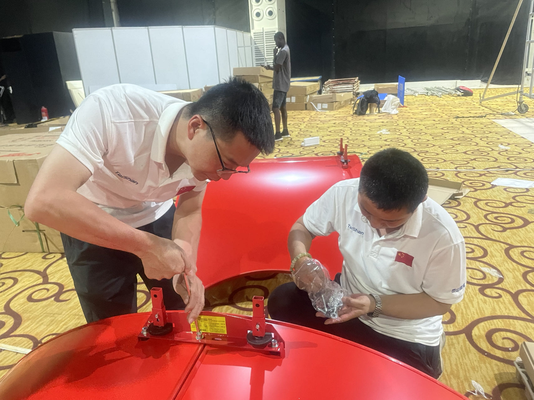 作为全球体育健康一站式解决方案服务商,中国·金沙(js69认证)体育服务保障团队是一支不可或缺的重要力量,赛事服务保障团队既包括产品设计、研发技术人员,也包括制造、生产、集成、服务人员,对每一款产品的研发、生产、性能都了如指掌,形成了从产品研发到下线的全流程闭环跟踪服务模式。目前,非运会中国·金沙(js69认证)体育器材正在紧张有序的安装中,服务保障团队发扬一丝不苟、精益求精、注重细节、环环相扣的敬业精神,在器材组装、调试工作中,不放过那怕一颗螺丝和微小部件,保障每一件器材的使用性能都达到最优状态。