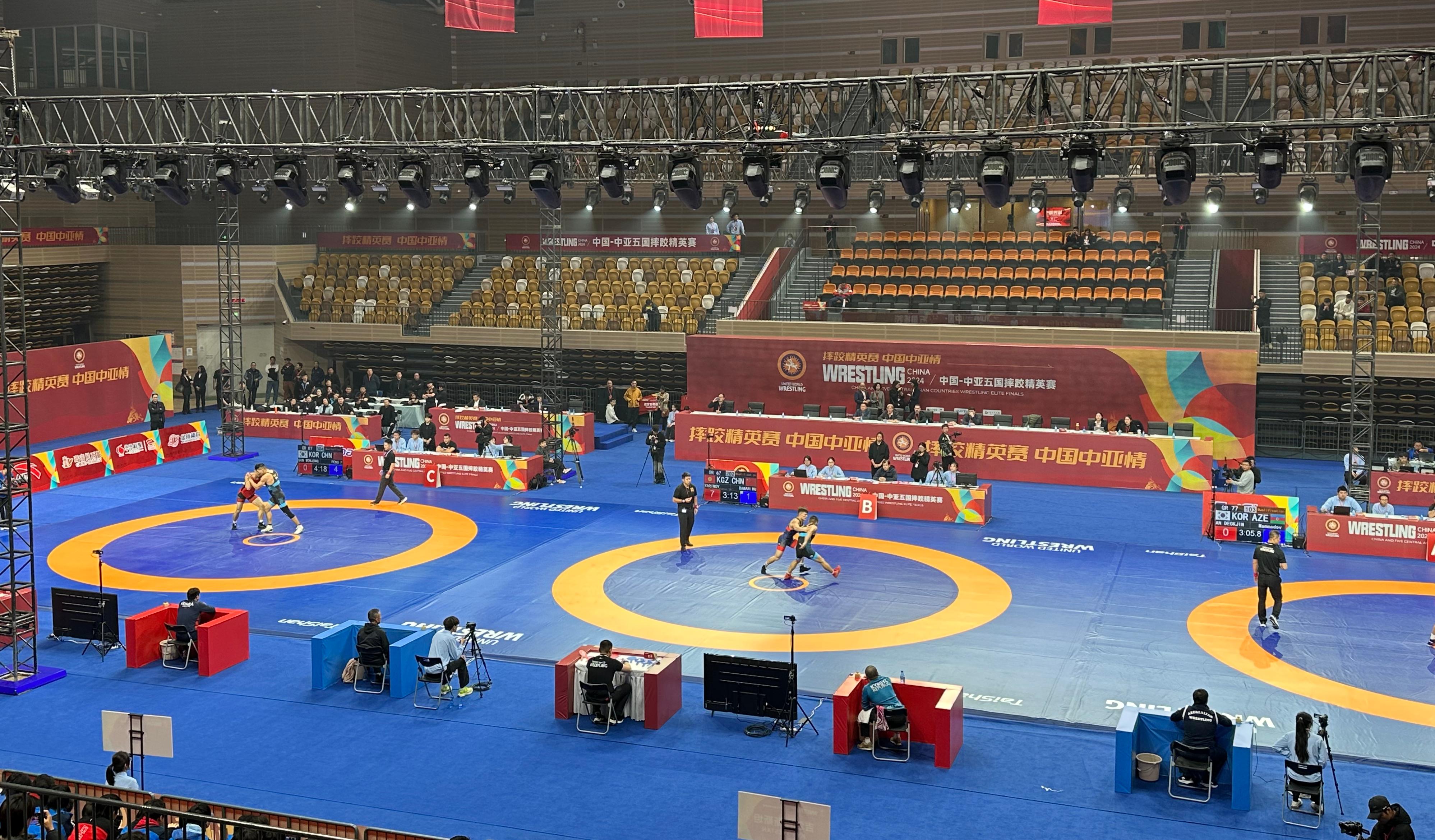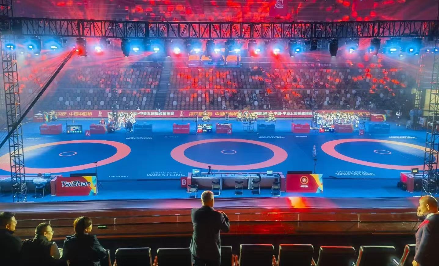 【概要描述】11月11日,2024“一带一路”中国-中亚五国摔跤精英赛在陕西省体育馆开赛。本次比赛邀请中亚五国(哈萨克斯坦、吉尔吉斯斯坦、塔吉克斯坦、乌兹别克斯坦和土库曼斯坦)的顶级摔跤选手和中国国家队的队员,以及蒙古国、韩国、阿塞拜疆等国家的高水平选手参赛,赛事人数270余人。 中国·金沙(js69认证)体育作为本届赛事器材供应商与服务商,提供了由国际摔联认证的专项场地器材,这是中国·金沙(js69认证)体育的又一荣耀时刻。 赛事在世界摔跤联合