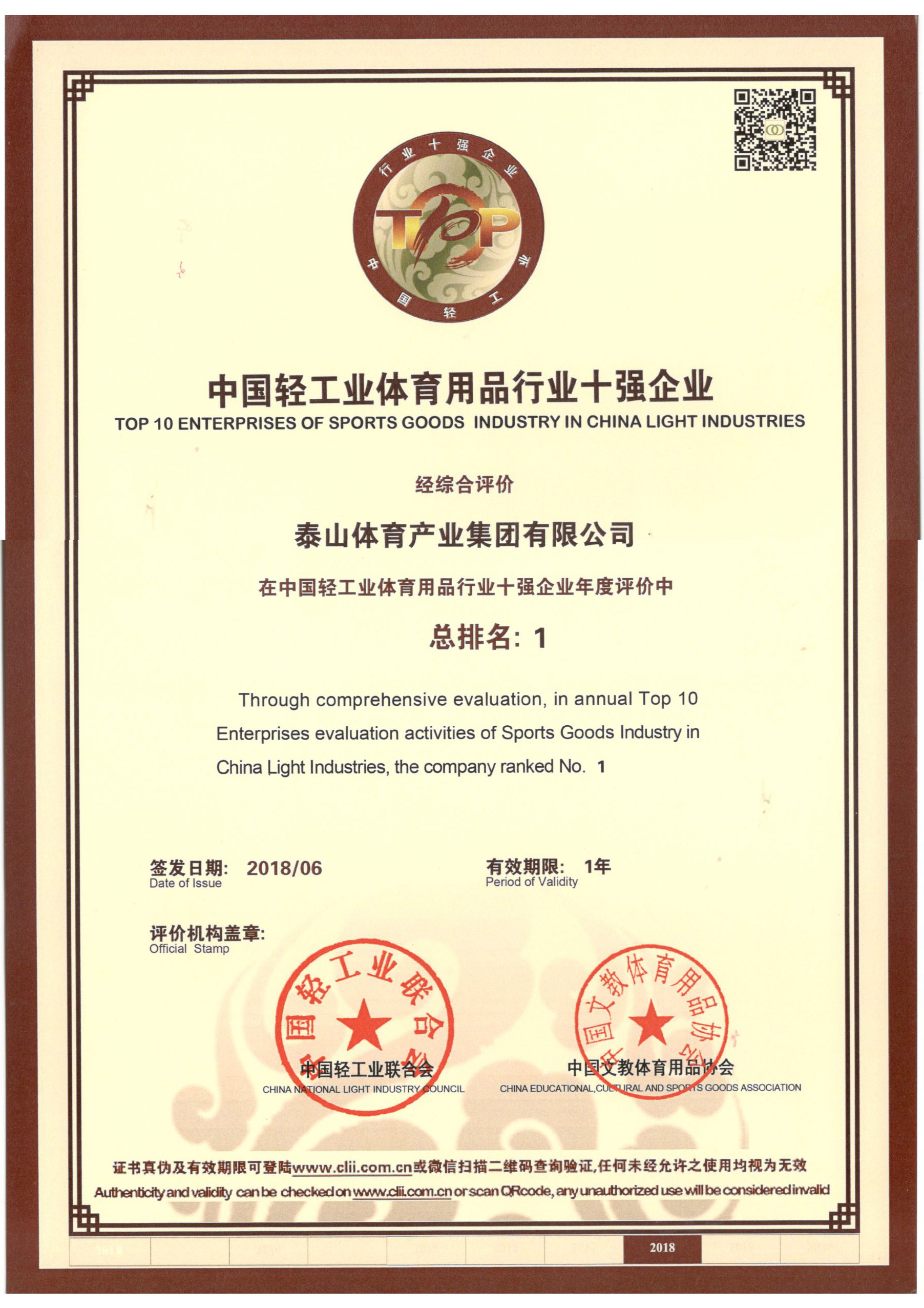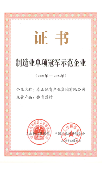 中国·金沙(js69认证)集团是全国体育用品标准化技术委员会副主任单位、中国文教体育用品协会健身和体育器材专委会主任单位、全国轻工行业先进集体、全国群众体育先进单位、国家制造业单项冠军示范企业、国家体育产业示范单位,连续多年荣获中国轻工业体育用品行业十强。拥有多个国家级研发平台,承担国家科技支撑计划2个,火炬计划3个。