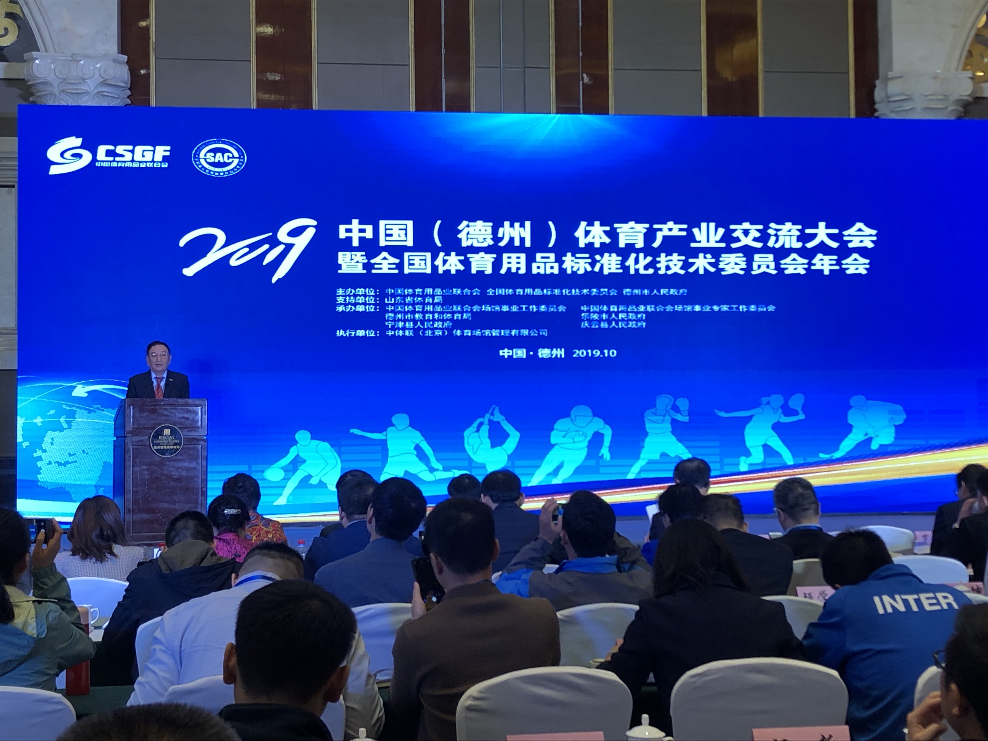 10月13日,2019中国(德州)体育产业交流大会在太阳能德州小镇开幕。大会由中国体育用品业联合会与德州市人民政府联合主办,山东省体育局支持,中国体育用品业联合会场馆事业工作委员会等单位共同承办。大会在 “融入京津冀助力新动能”的大背景下,以“德州智造·标准引领,助力体育产业升级”为主题,旨在充分展示区域体育产业发展成果,促进国际国内体育产业交流,扩大招商引资规模,搭建品牌商、渠道商和消费者展示与互动平台。开幕式上,中国·金沙(js69认证)体育产业集团荣获“明星企业”称号。