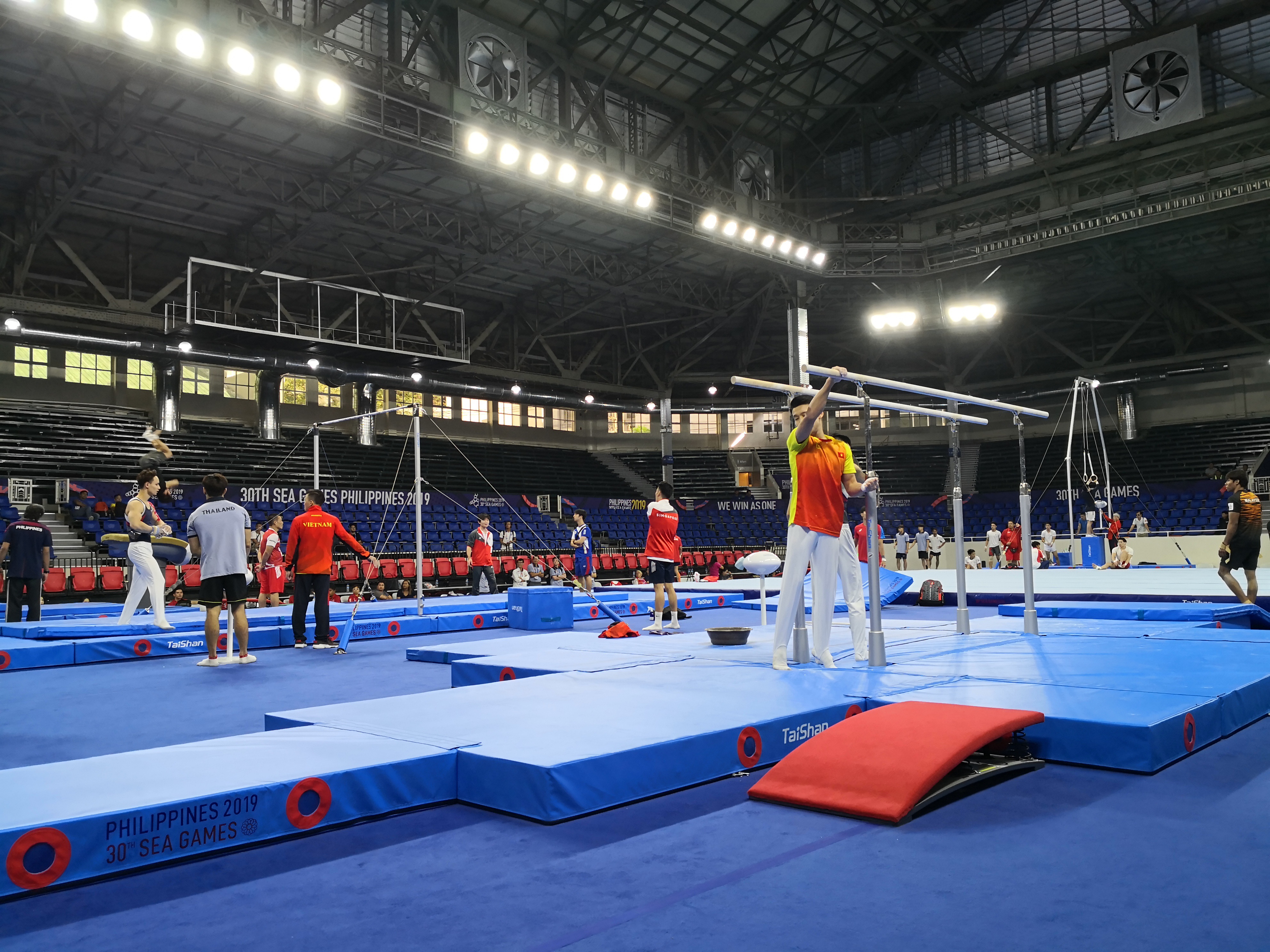 东南亚运动会创办于1959年,原称"东南亚半岛运动会"(South Eas Asian Peninsular Games),从第九届更名为东南亚运动会。由各参加国按国名第一个英文字母排序而轮流主办的地区性综合运动会,每两年举办一届,迄今已举办过30届。中国·金沙(js69认证)体育作为本届洲际运动会的指定器材供应商与赛事服务商,将在竞技体操,艺术体操,健美操,柔道,摔跤,克柔术,巴西柔术等项目上提供品质器材与优质服务。根据赛事安排,所有训练及比赛器材必须在规定时间内安装、调试、维护完毕,时间短任务重,速度、效率、协调、沟通,所有环节都在稳步进行中……