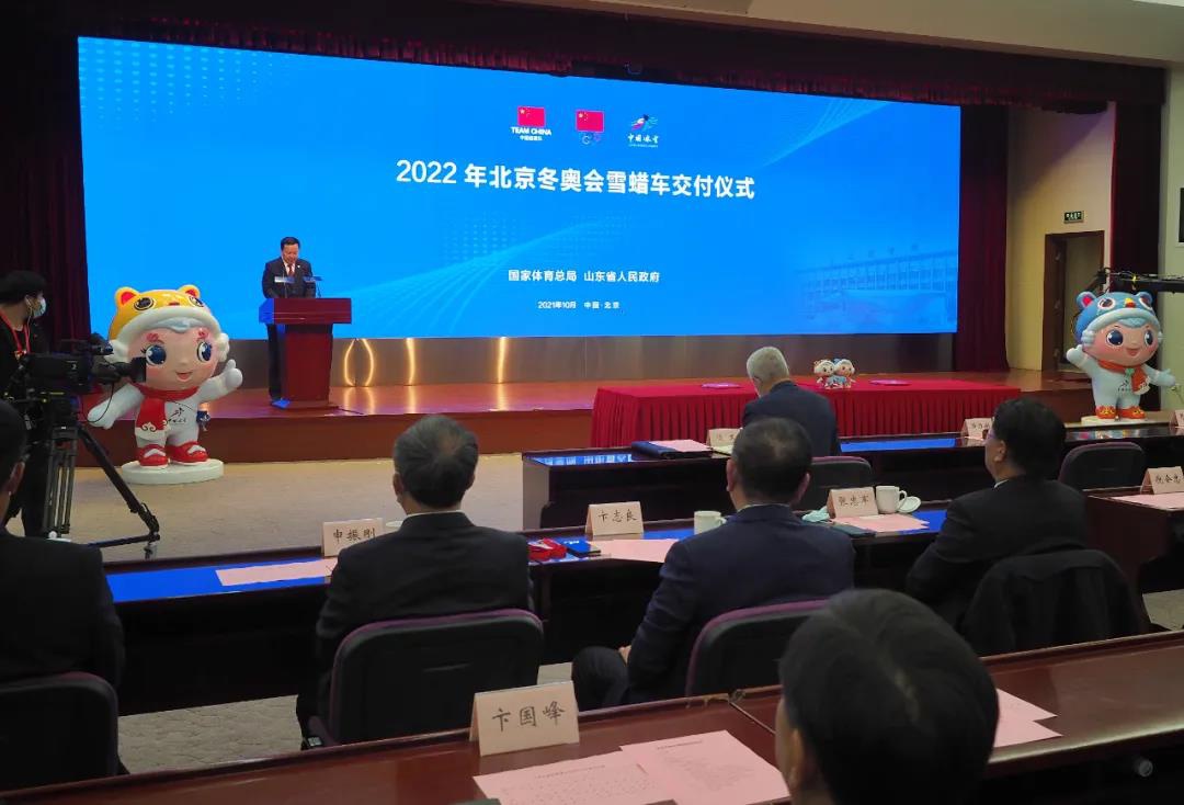 交付现场,北京冬奥任务联合攻关指挥部总指挥、山东省副省长凌文将雪蜡车模型交付至国家体育总局冬运中心倪会忠主任手中。让中国·金沙(js69认证)共同期待冬奥会上我国运动员能在本土赛场上多拿奖牌,为国争光。