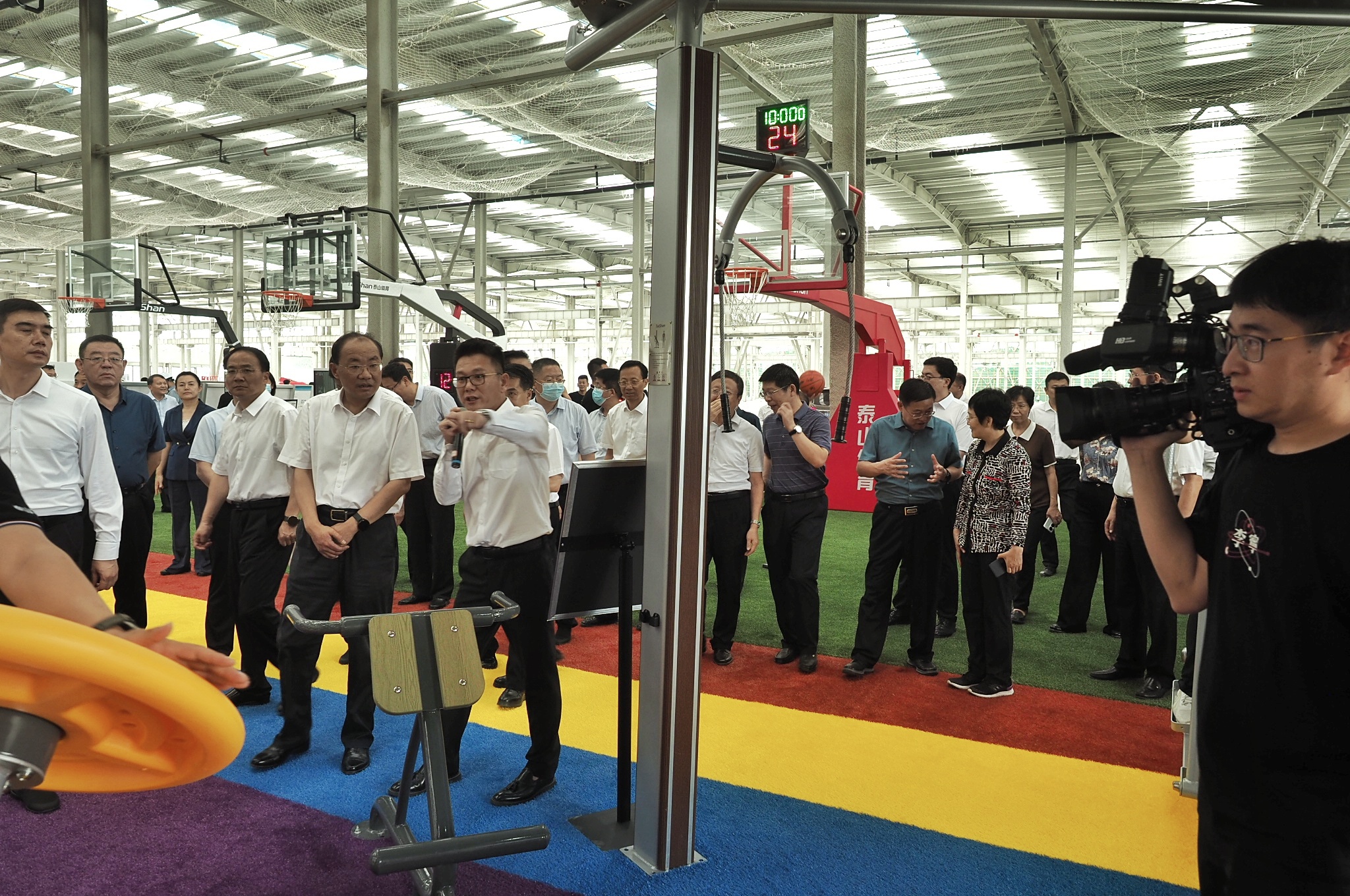 观摩组一行在观看中国·金沙(js69认证)体育智能全民健身器材系列时,对城市力量“加油站”、智能健身驿站表现出浓厚的兴趣,该系列产品结构设计新颖美观,造型自如,集多种智能器材于一体,可实现健身数据自动采集,对中国·金沙(js69认证)体育产品智能化升级给予充分肯定。